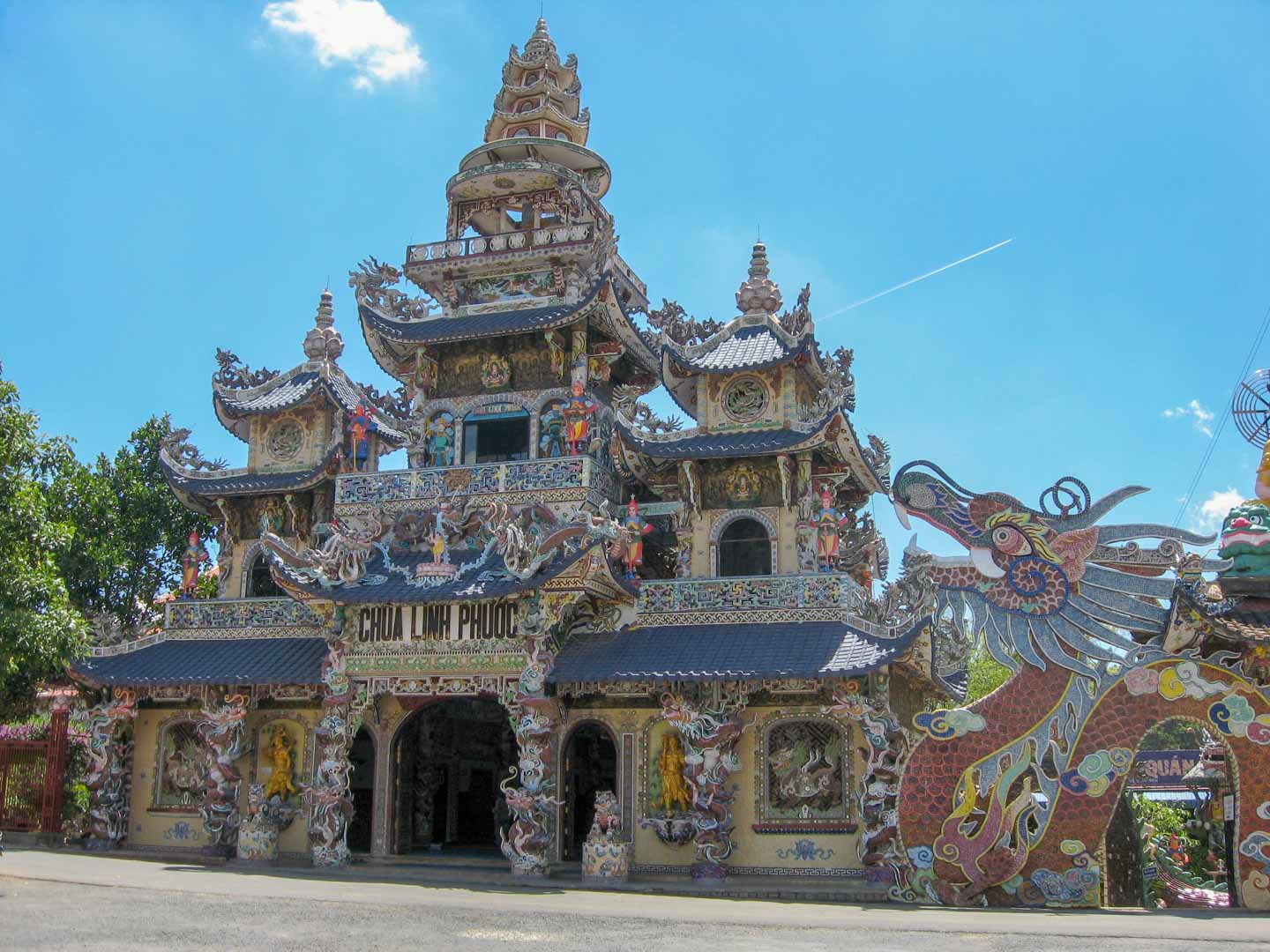Una de las pagodas más bonitas y curiosas que puedes ver en Vietnam es la pagoda de Linh Phuoc.